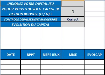 Capital à indiquer avant de commencer, booster ou non la gestion. Le choix est expliqué dans l'ebook fourni. Et ensuite, indiquer la date et le rapport :