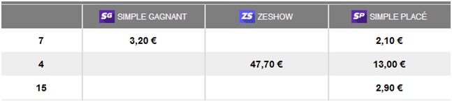 Et si la Méthode tombe sur un SEUL CHEVAL le Gain est pratiquement sûr!Exemple Réel 3 sur la Course de Trot SuivanteLa Méthode indique en un coup d'oeil qu'il ne faut jouer que le N°7.Vous allez jouer ce Cheval EN SIMPLE GAGNANT.Résultat de l'Exemple Réel 3ON GAGNE 44% DE FOIS.Autrement dit, vous allez trouver le GAGNANT de la course une fois sur deux.Capital conseillé 100€On peut démarrer avec 1 seul eurogrâce à notre Gestion Financière par Répartition. Gestion Inédite.On ne joue que sur les Courses de Trot.Vous avez des Courses de Trot Tous les Jours. Vous choisissez votre Course.Bien sûr vous pouvez jouer à toutes les courses car la méthode donne à coup sûr un cheval par course. Parfois il y a plus de 20 courses de Trot dans la journée. Et vous Gagnerez environ 9 fois.Vous avez donc de quoi faire de l'Argent Tous les jours.Vous jouez quand vous voulez.Et vous arrêtez vos gains au niveau que vous souhaitez.Prix de vente : 19 € seulement au lieu de 59 €Nous Sommes Sûrs que ce Guide vous rendra Heureux de Jouer et de Gagner. Nous n'en doutons pas et nous vous offrons une Garantie "Satisfait ou Remboursé" de 30 Jours pour tester cette Petite et Simple Méthode au Petit Salaire Mensuel qui GAGNE TOUS LES JOURS.« IL Y A TOUT DANS CET EBOOK immédiatement POUR GAGNER ET SE FAIRE DES COMPLÉMENTS DE REVENU NET D'IMPÔT.Je voulais aussi faire en sorte que tous les amoureux des courses et surtout tous mes amis parieurs, toujours déconsidérés, méprisés…puissent connaître UNE MÉTHODE PROFESSIONNELLE.PS: En supplément, je vous indiquerai une Gestion Financière par Répartition.La Montante est Originale car elle se pratique par Course et non par chevaux.Et la façon de GAGNER 100€ NET!Les commentaires des clients :Cette méthode du Petit Salaire est peut-être la Meilleure que vous ayez faîte.Depuis le 1er janvier j'ai joué 223 chevaux et je gagne 808 € pas loin du salaire promis. Merci Merci... Mohamed C.« Le programme de votre Robot qui donne les chevaux a jouer facilite la vie. Il est vrai que même sur Zeturf les cotes varient beaucoup, mais j'ai une totale confiance en cette Méthode». Alberto V.«J'apprécie beaucoup de toucher pratiquement une fois sur deux. Certes ce sont des favoris mais qui sont plus rentables que les favoris de la presse. Je vous remercie une nouvelle fois de nous faire profiter de vos connaissances immenses» . Enzo L.«J'aime beaucoup ce que vous faites. C'est peut-être votre Meilleure Méthode. Meilleure Méthode parce qu'elle a le moins d'écart (j'ai noté 10 à l'écart au Jeu Simple Gagnant). Cette méthode arrive 1 fois sur 2. Tout ça pour dire que je suis très très satisfait. Ethan M.«Très facile de détecter le Cheval à jouer. - Je viens à peine decommencer et j'ai déjà gagné 3 fois sur 3. Je n'en reviens pas que c'est aussi simple de gagner. Je suis très contente de mon acquisition. Je m'éclate rien que de savoir que je suis toujours dans le coup». Elodie P.« La gestion financière me tracassait car ne ne voulais pas exploser avec une montante classique. Je joue en répartissant mes mises tel que vous le préconisez... rien que pour ça cee ebook vaut le coup». Lucas N .«J'ai téléchargé l'ebook. Permettez moi de vous dire tout de suite ce que j'en pense : C'est si simple et génial.» Louis J.«Je comprends pourquoi vous êtes N°1 en France des ventes de Méthodes TURF. Maxence G.«Bonjour et merci pour ce que vous faites pour essayer de nous faire gagner nous les petits turfistes. (Je suis ouvrier et par conséquent peu de moyen») Alain V.«Je tiens à vous signifier ma GRANDE satisfaction. C'est la première fois que je gagne autant. Hier à Vincennes 6 GAGNANTS sur les 9 courses Gains 1,80 puis 2,80 puis 4,10 puis 2,60 puis 2,80 puis 2,80 encore à la dernière. Vous pouvez bien entendu publier mon témoignage amicalement un turfiste heureux. René.M«Je ne sais si vous avez eu mon témoignage hier ce jour encore un beau gagnant placé sur la réunions mauquenchy + c'est près de 400€ de bénéfice depuis le début de la semaine encore merci et bravo Amicalement « Ferdinand B.« La méthode a encore frappé dans la 8° a Vincennes 300€ de gains c'est tout simplement fabuleux ! Pierrette K.«Bonsoir, D'abord vous manifester toute ma reconnaissance pour la méthode que j'utilise depuis plus de 1 mois et qui est très formidable.» Marie P.«Bonsoir,Je vous confirme que j'ai bien reçu l'ebook après mon achat. Je l'ai lu et ça m'a été très instructif. Comme je vous l'ai dit au début je voulais chercher par moi même les 2 critères et je peux vous dire que j'en était très proche sauf que je prenais ce 2ème critère dans l'autre sens.C'est avec un très grand respect que je vous remercie pour avoir appris sur le monde des courses. Encore bravo pour toutes ces années d'études et arriver a cette méthode, une méthode qui restera secrète par respect envers le grand Mr que vous êtes. Merci» Mariano A.Tarif exceptionnel de l'ebook (fichier) "La méthode qui gagne tous les jours" : 19 € au lieu 59 €.Offert avec l'achat de La méthode qui gagne tous les jours : l'ebook Devenir Parieur Professionnel.
